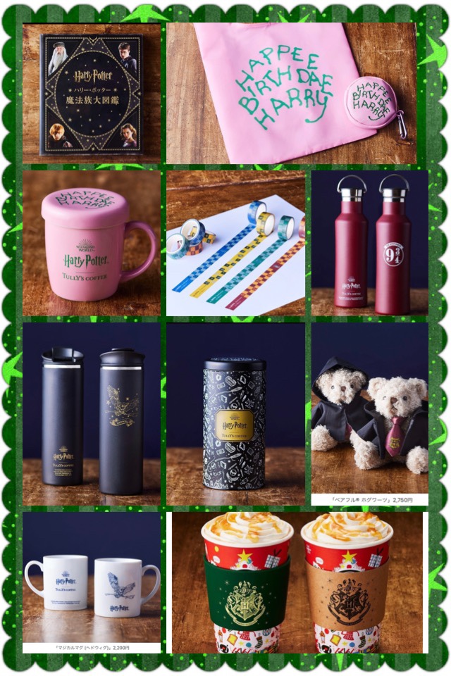 ハリーの相棒ヘドウィグが描かれているシックなタンブラー、ホグワーツのフード付きコートとネクタイを着用したベアフル(ラテ)、表面にホグワーツの紋章を型押ししたブックカバー、ホグワーツ行きの汽車カラーと「9と3/4番線」をデザインしたステンレスボトル、お湯を入れると月や星が現れるマグカップなど、多彩なバリエーションのグッズが用意されている。